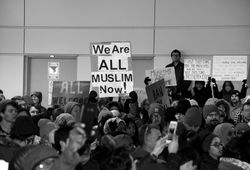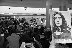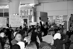 Columbus, Ohio- January 29, 2017: A Protest at John Glenn International Airport protesting President Trump's Executive Order initiating a travel ban for people from 7 Muslim-majority countries.