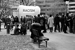 Washington D.C.- January 20, 2017: Images from an Anti-Trump Protest at McPherson Square on Donald Trump's Inauguration Day.