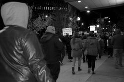Columbus, Ohio- November 21, 2016: An Anti-Trump Demonstration at the Ohio Statehouse, followed by a March through downtown Columbus. The protesters are part of the "Not My President" Movement.